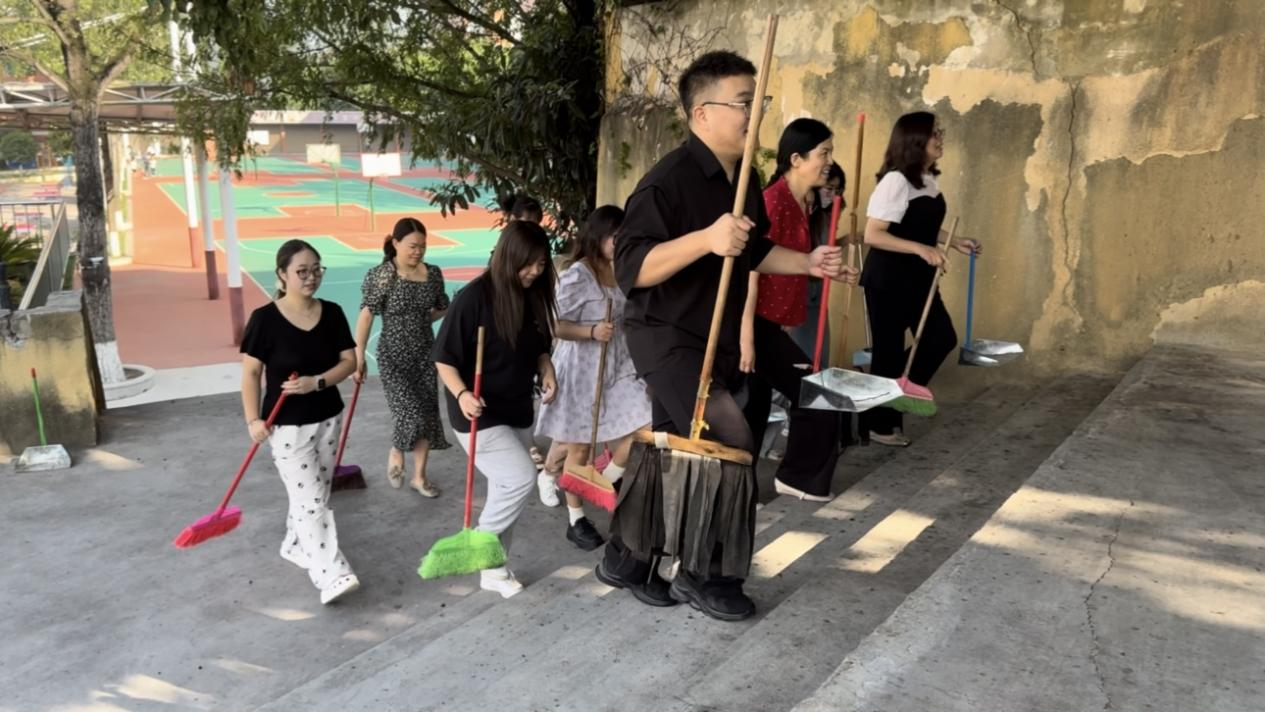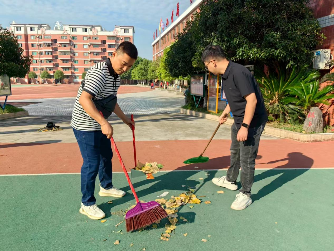 尽管天气炎热,但每位教师都干劲十足,相互配合,默契协作。有的清扫落叶,有的擦拭栏杆,有的清理垃圾,不放过任何一个卫生死角。经过两个多小时的共同努力,整个校园焕然一新,呈现出整洁有序的新面貌。